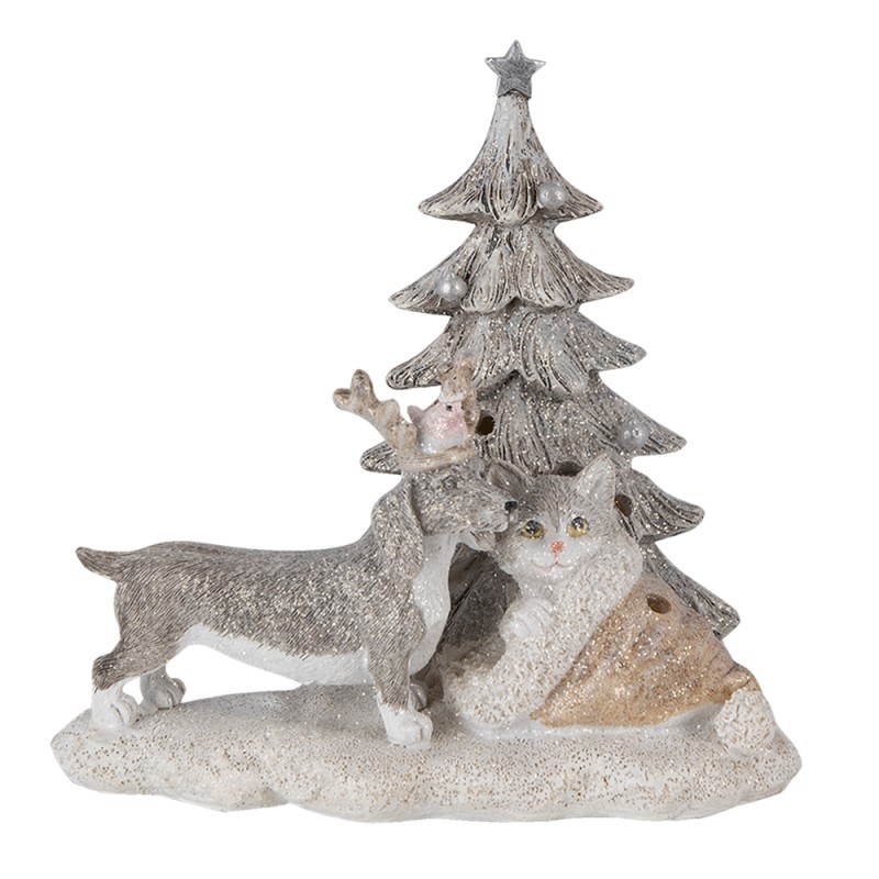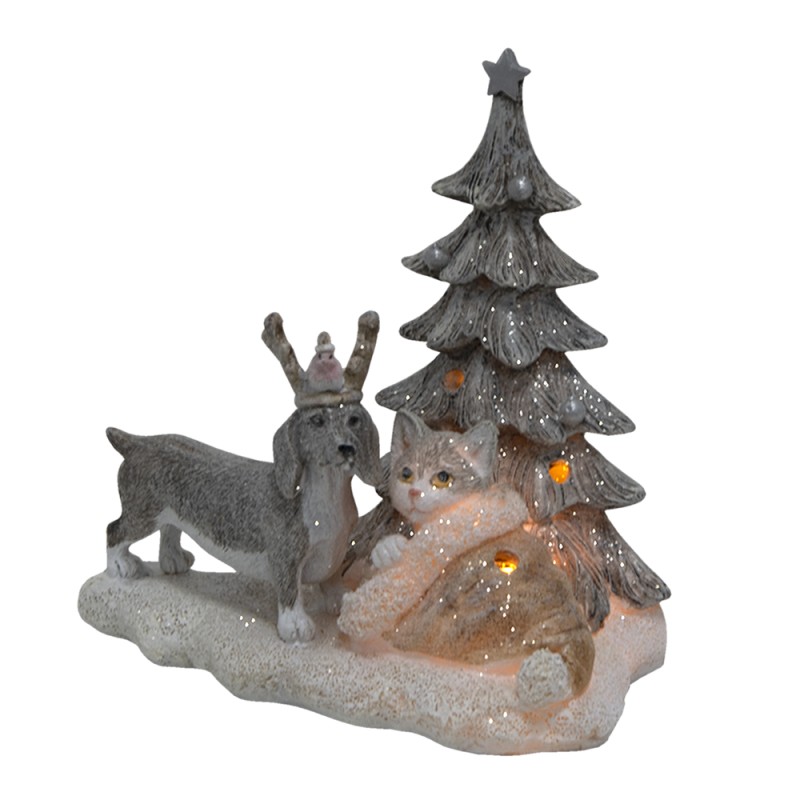 Clayre & Eef Figurine Animals 16x10x15 cm LED Grey Beige Polyresin Animals