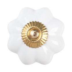 Clayre & Eef Door Knob Ø 5 cm White Gold colored Ceramic