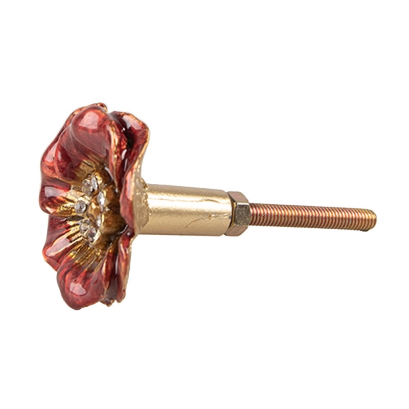 Clayre & Eef Door Knob Flower Ø 4x3 cm Red Metal