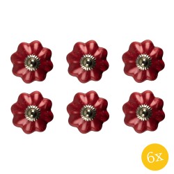 Clayre & Eef Deurknop set van 6 stuks Ø 4 cm Rood Keramiek Meubelknop