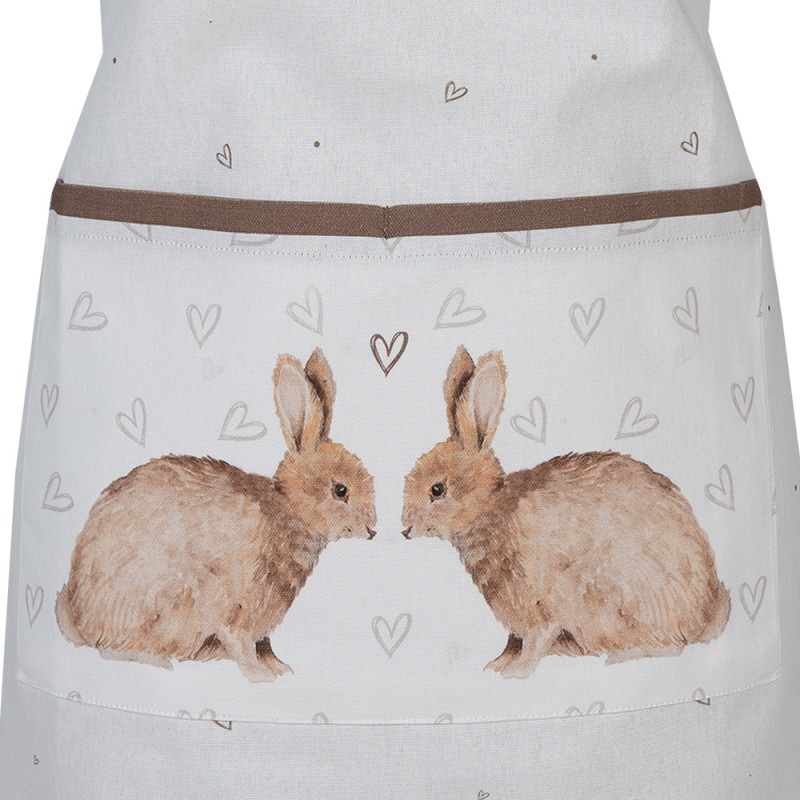 Clayre & Eef Kitchen Apron 70x85 cm White Brown Cotton Rabbit