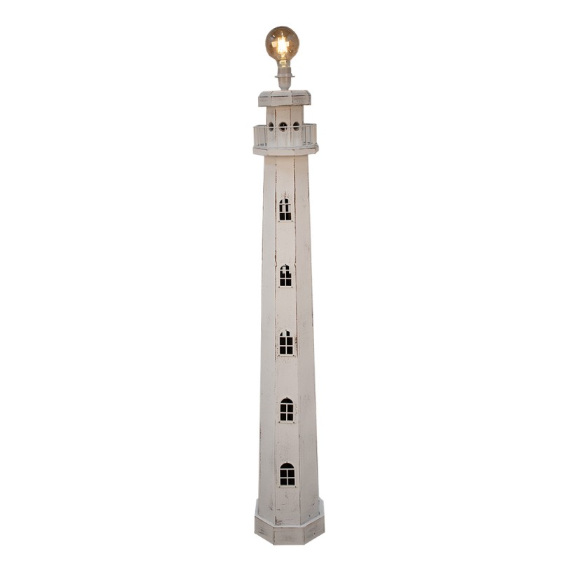 Clayre & Eef Floor Lamp Lighthouse 23x23x140 cm White Wood