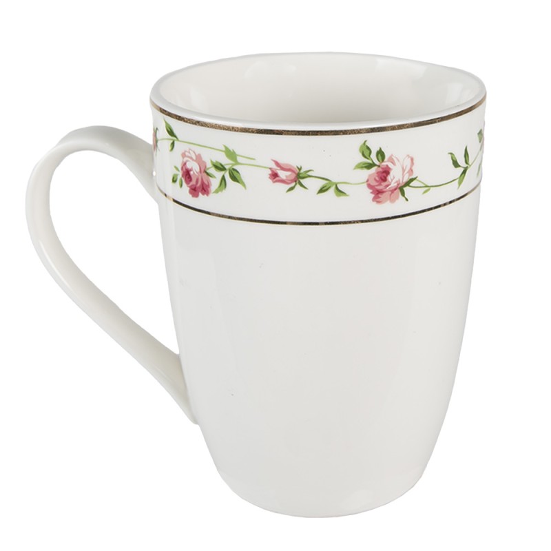 Clayre & Eef Mug 300 ml White Pink Porcelain Flowers