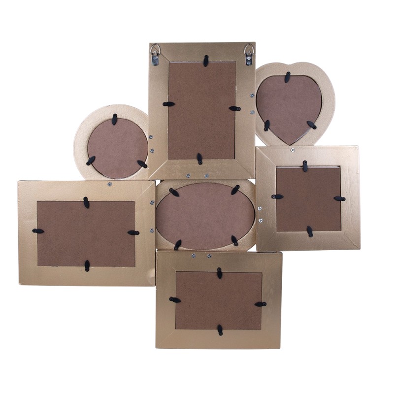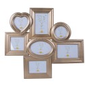 Country-style gold-coloured wooden photo frame, suitable for seven photos, by the brand Clayre & Eef. Size of frame 52x2x47 cm. Hanging: horizontal only