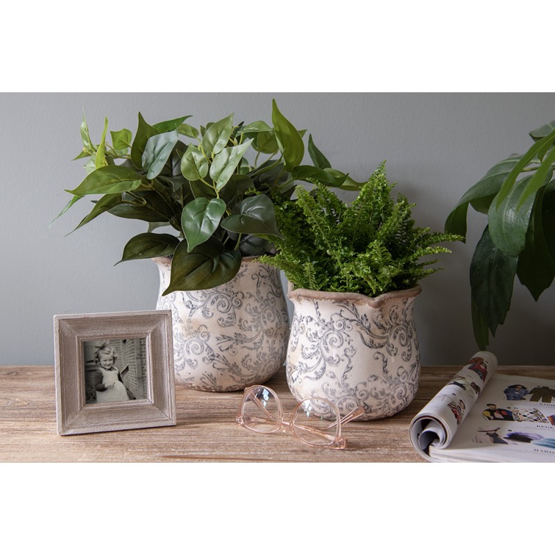 Clayre & Eef Planter Ø 18x17 cm Beige Grey Ceramic Flowers