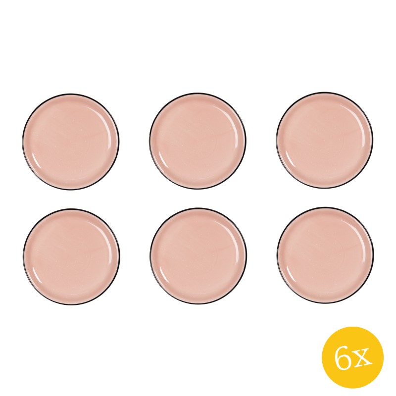 Clayre & Eef Dinerbord set van 6 stuks Ø 27 cm Roze Keramiek Rond Eetbord