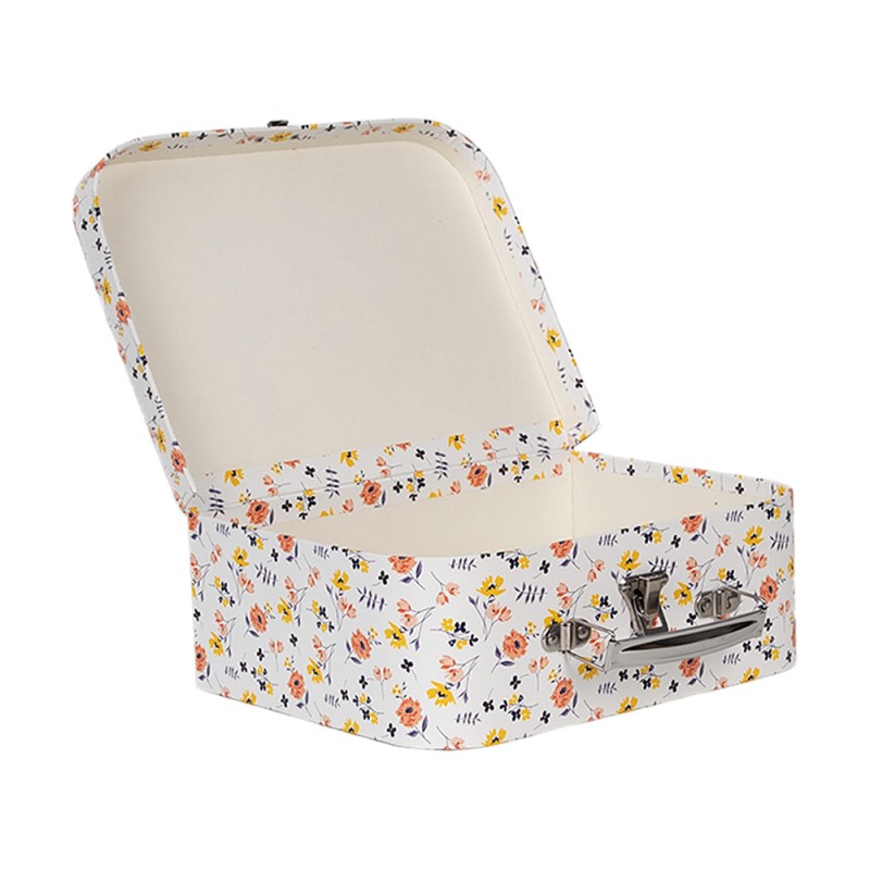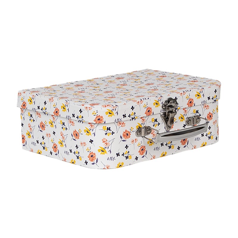 Clayre & Eef Decorative Suitcase Set of 3 30x22x9/25x20x9/20x17x8 cm White Cardboard Flowers