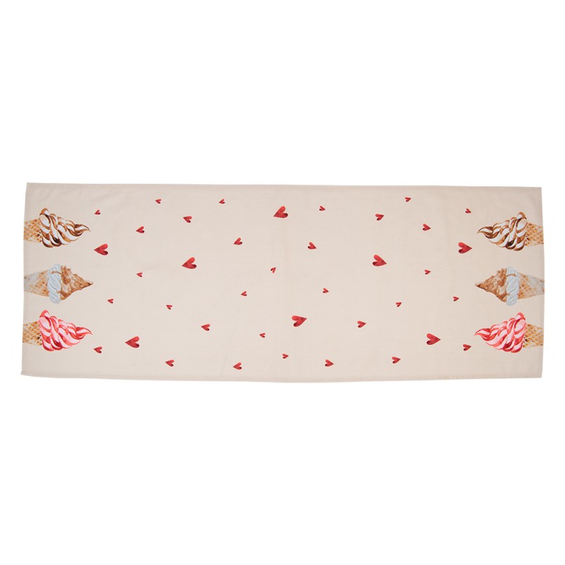 Clayre & Eef Table Runner 50x140 cm Beige Pink Cotton Ice Cream