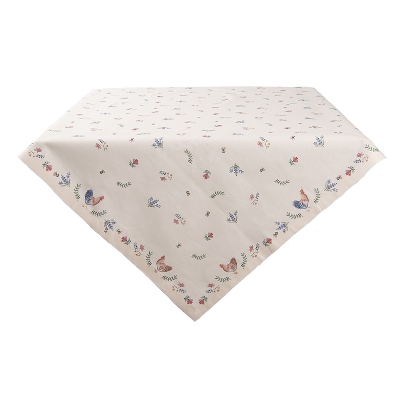 Clayre & Eef Tablecloth 100x100 cm Beige Blue Cotton Chicken and Rooster