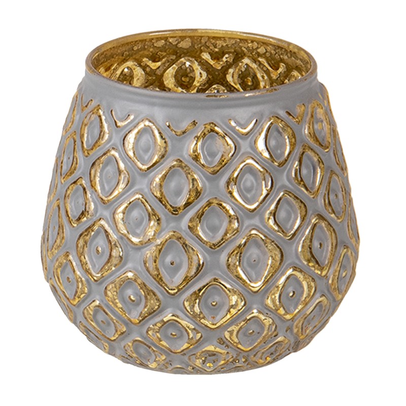 Clayre & Eef Tealight Holder Ø 9x8 cm Gold colored Grey Glass
