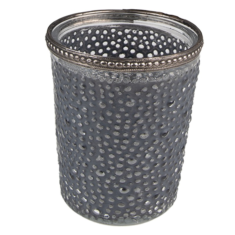 Clayre & Eef Tealight Holder Ø 6x7 cm Grey Glass