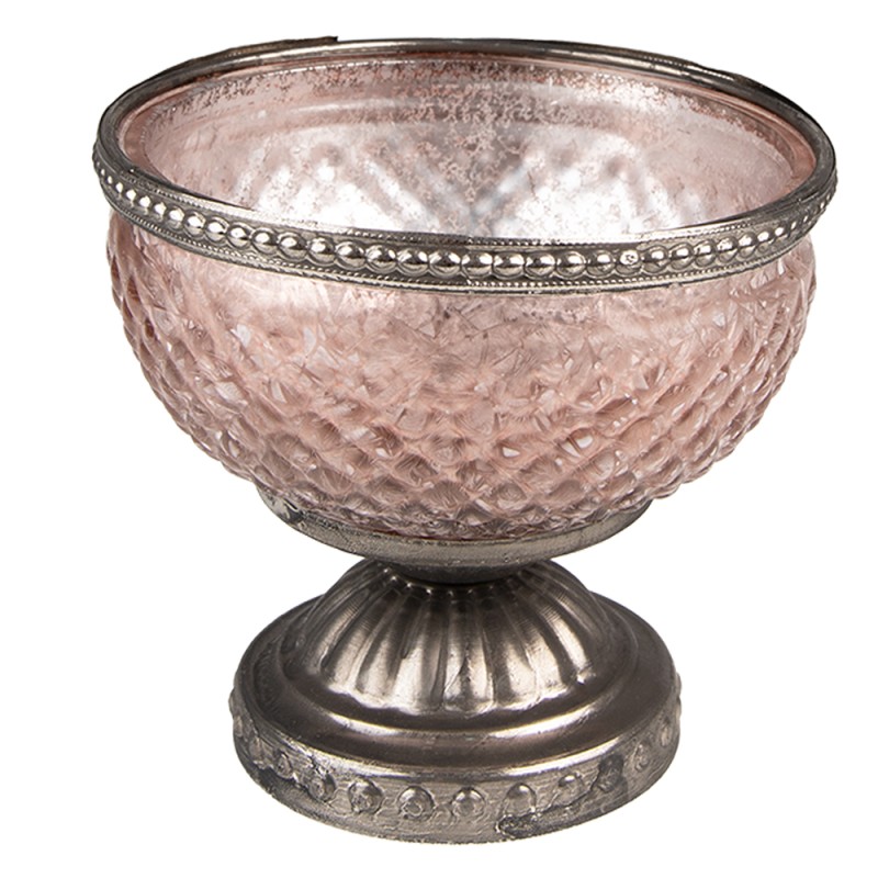Clayre & Eef Tealight Holder Ø 11x10 cm Pink Glass