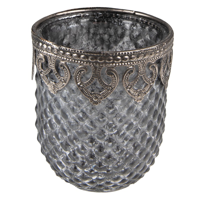 Clayre & Eef Tealight Holder Ø 8x9 cm Grey Glass