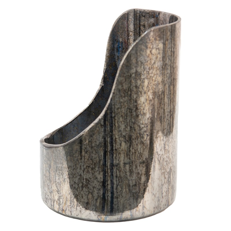 Clayre & Eef Tealight Holder Ø 18x24 cm Silver colored Glass