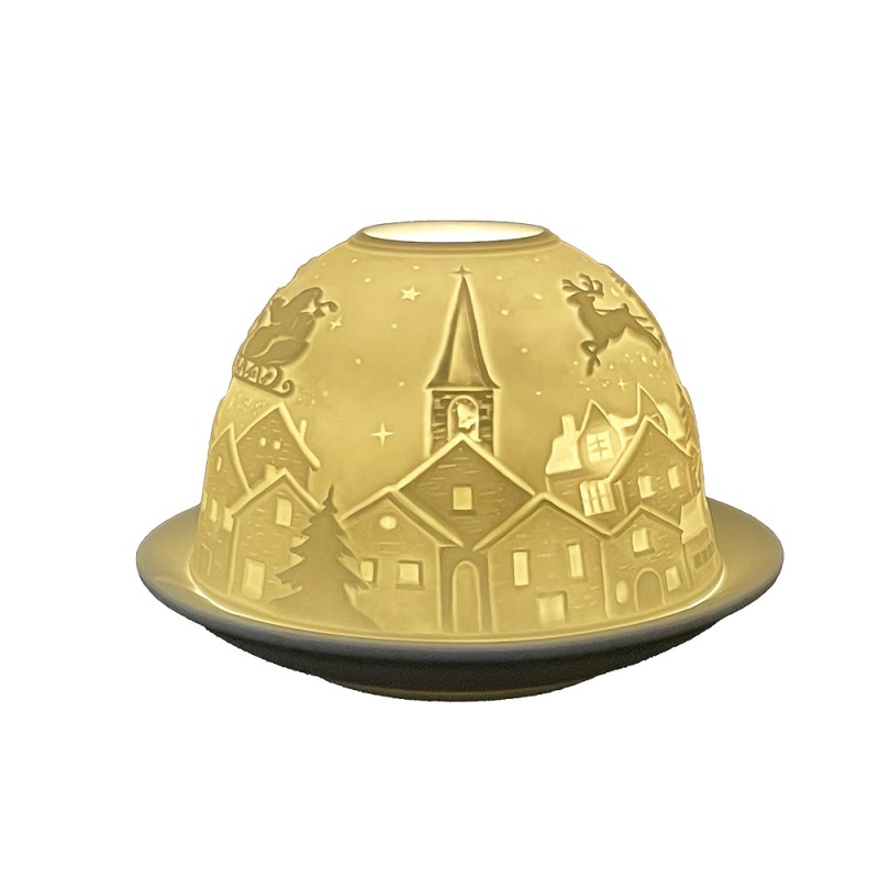 Clayre & Eef Tealight Holder Ø 12x8 cm White Porcelain Christmas