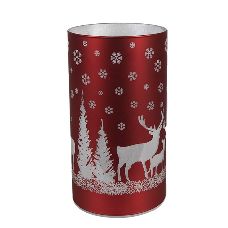 Clayre & Eef Tealight Holder with LED Ø 8x12 cm Red Glass Deer
