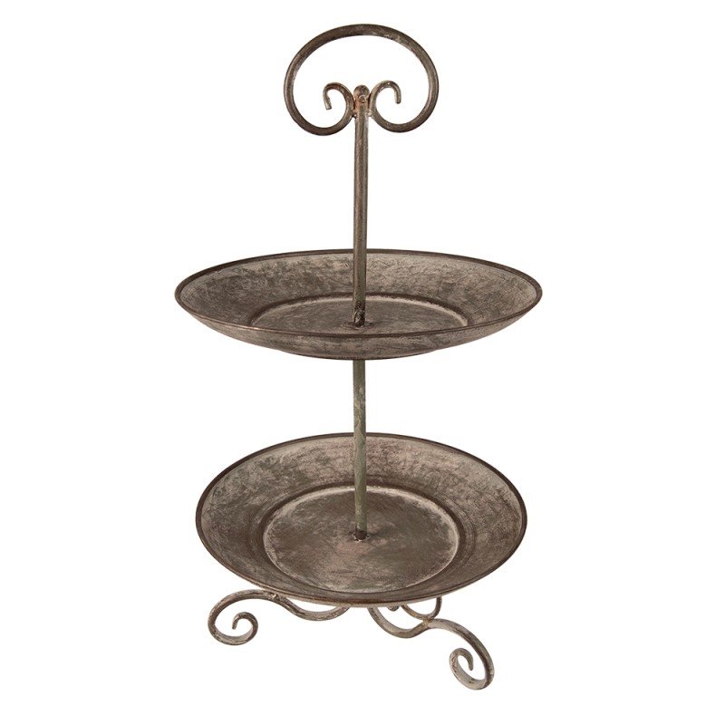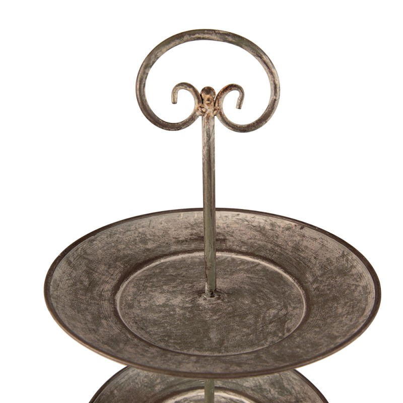 Clayre & Eef Etagere 2 layer Ø 28x53 cm Grey Green Iron