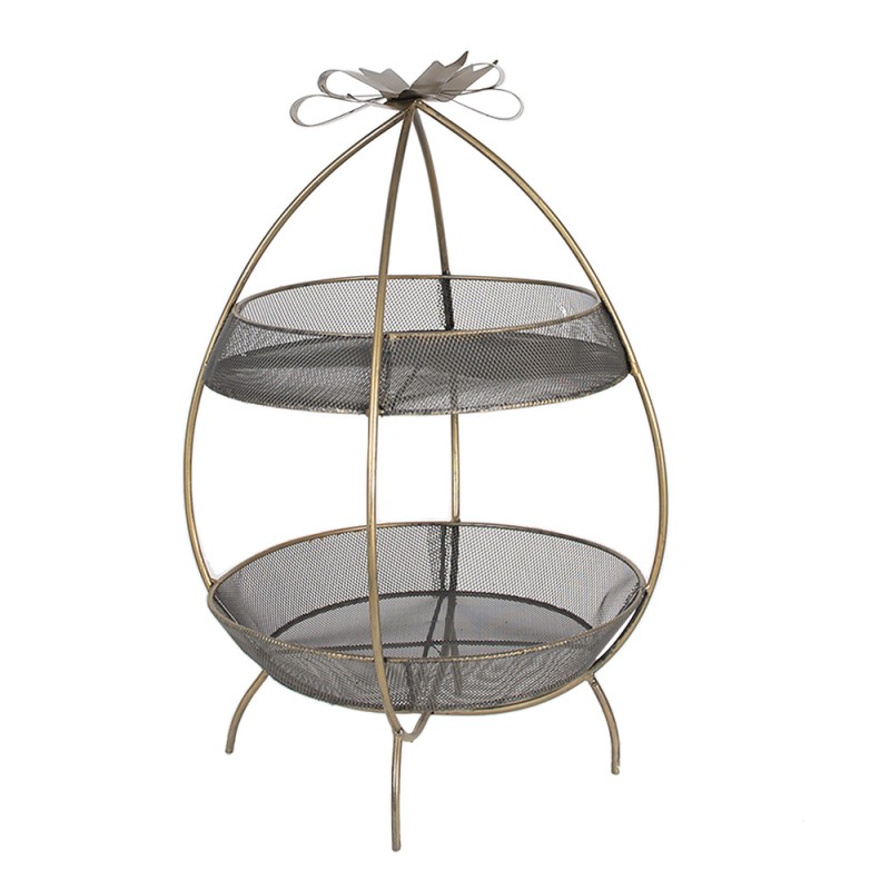 Clayre & Eef Etagere 2 layer Ø 34x51 cm Gold colored Iron