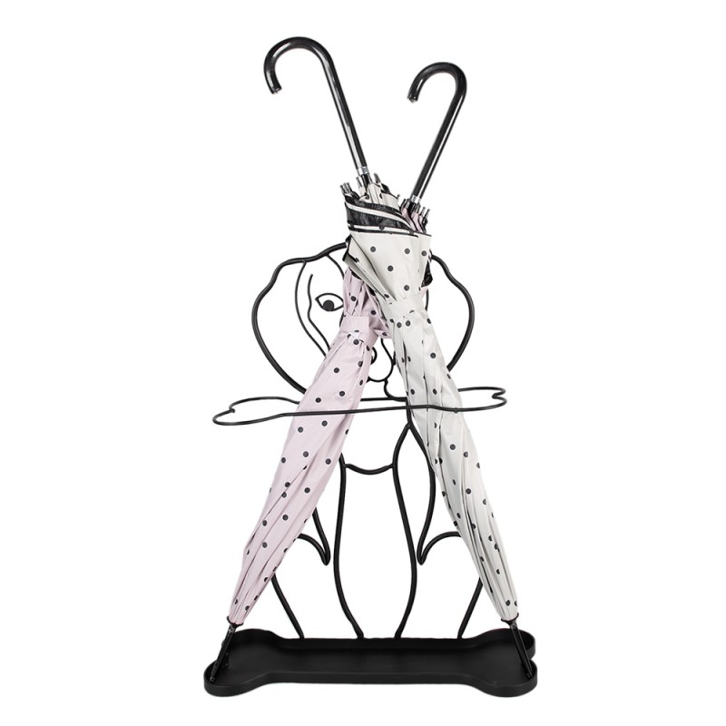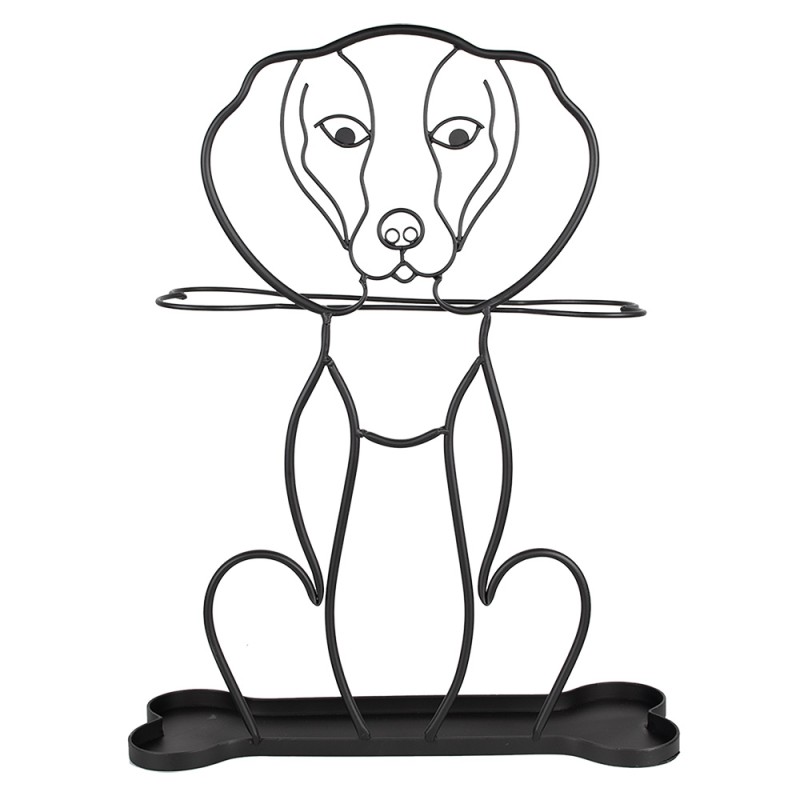 Black iron umbrella stand in the shape of a dog. Practical for use and a beautiful decorative element.