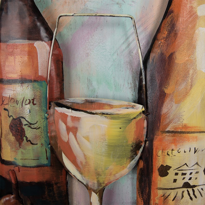 Clayre & Eef 3D Metal Paintings 120x80 cm Brown Red Metal Wine Bottle