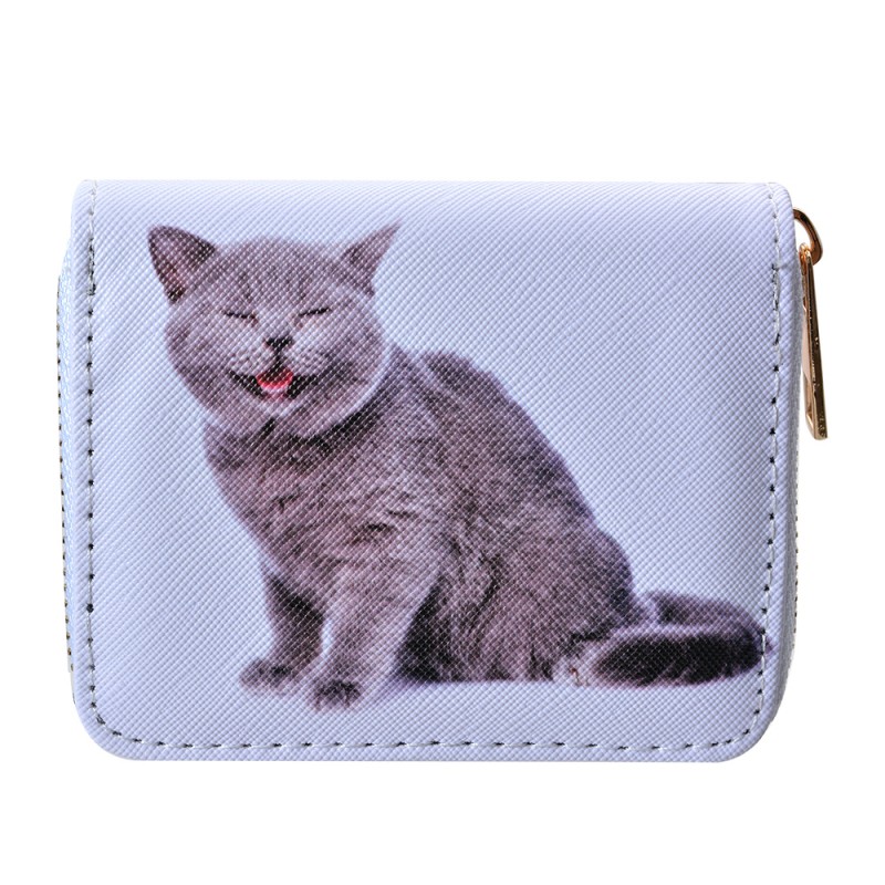 Beautiful white wallet with a cute cat. Inside, there is space for bills, card slots, and a compartment for coins. This wallet is both functional and stylish.