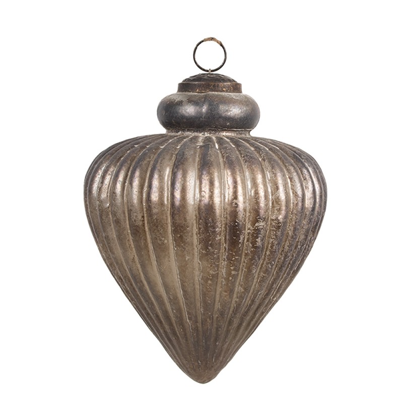 Clayre & Eef Boule de Noël Ø 13x17 cm Gris Marron Verre