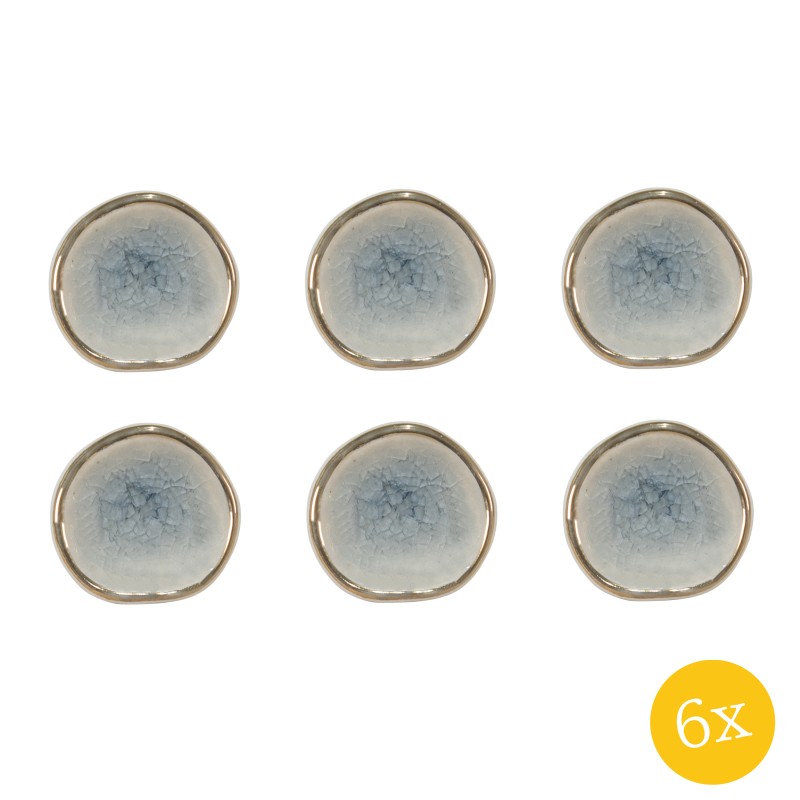 Clayre & Eef Deurknop set van 6 stuks 4x3x4 cm Blauw Wit Keramiek Meubelknop