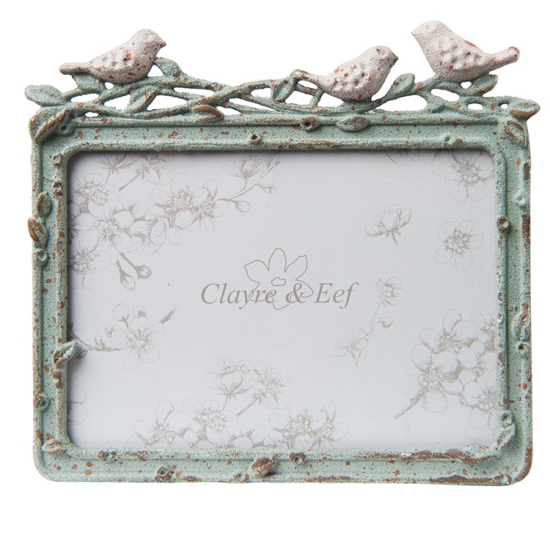 Clayre & Eef Cadre photo 13x9 cm Vert Métal Oiseau