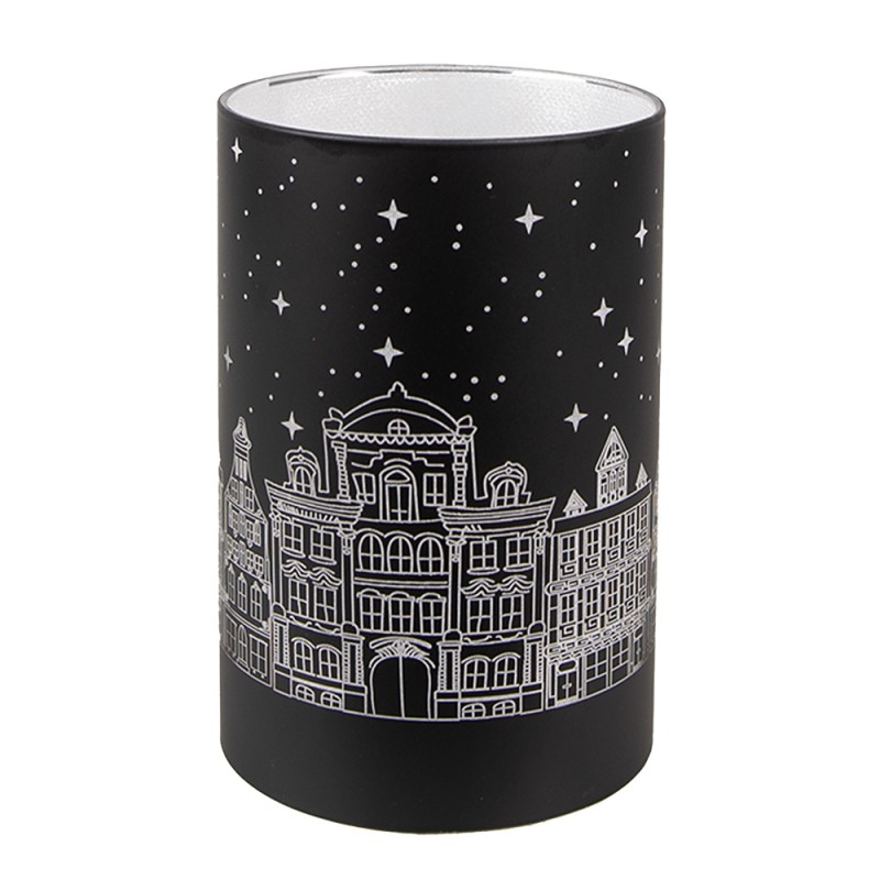 Clayre & Eef Bougeoir avec LED Ø 9x16 cm Noir Verre