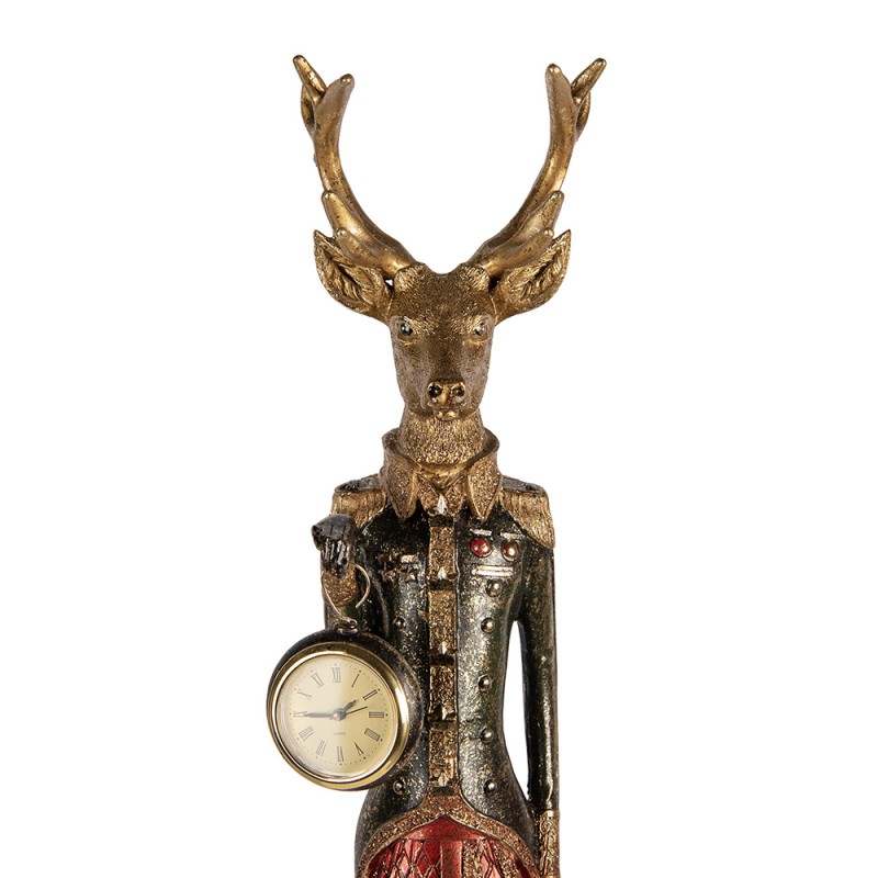 Les dimensions discrètes de 12x16x87 cm facilitent le placement du cerf sur un buffet, une étagère ou un rebord de fenêtre. Grâce à l'horloge intégrée, vous avez non seulement un élément décoratif, mais aussi une fonction pratique à portée de main. Avec son design unique et sa polyvalence, cette décoration cerf est le complément parfait pour votre maison, offrant à la fois style et fonctionnalité.