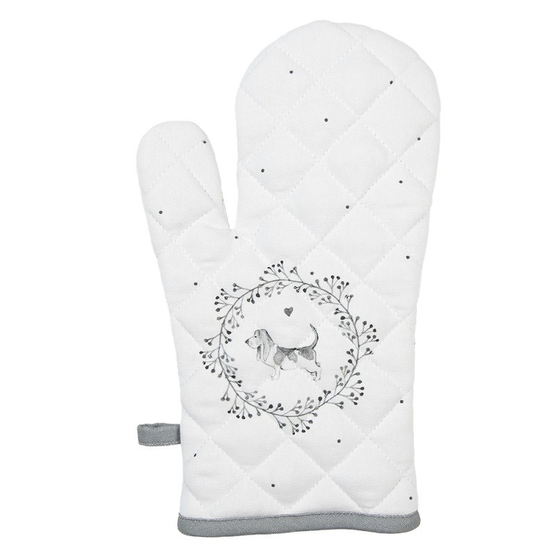 Clayre & Eef Manique de four 18x30 cm Blanc Gris Coton Chien
