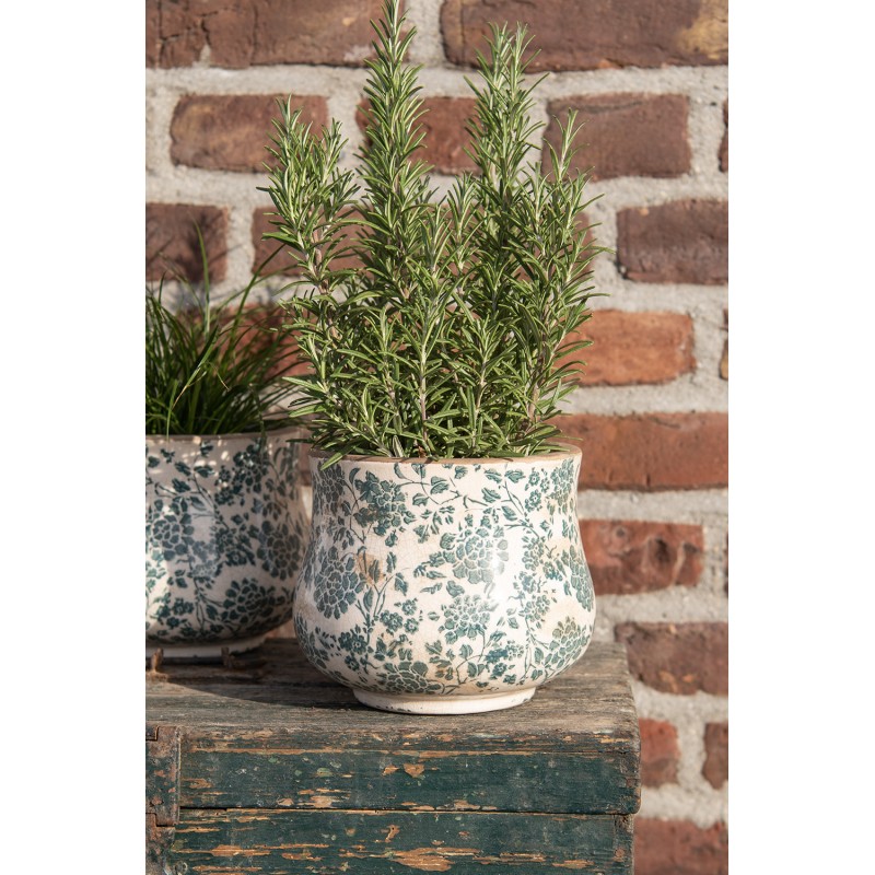 Clayre & Eef Pot de fleurs Ø 18x15 cm Beige Vert Céramique Fleurs