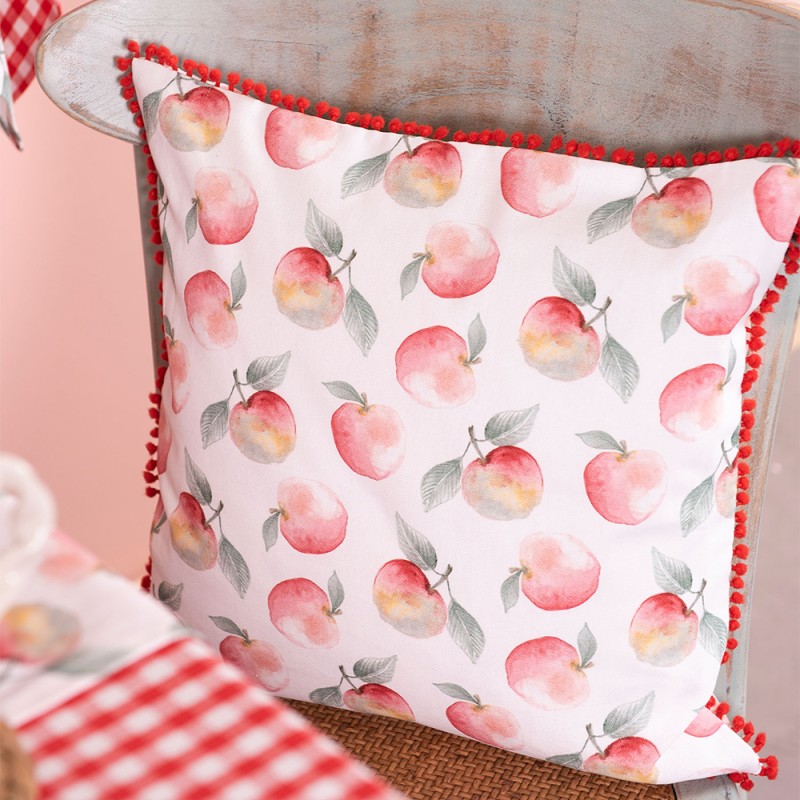 Clayre & Eef Housse de coussin 40x40 cm Blanc Rouge Coton Pomme