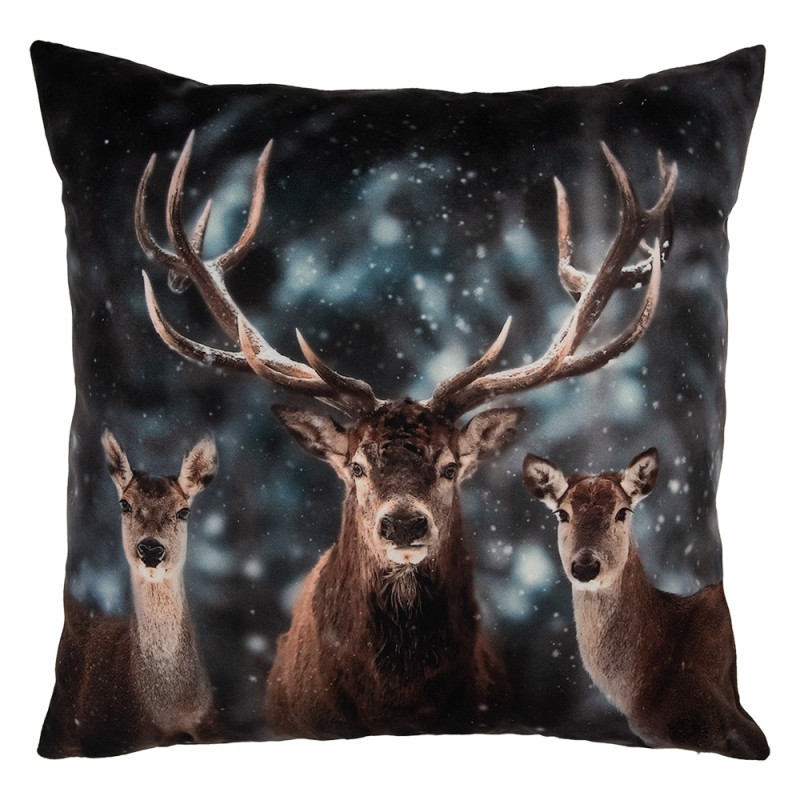 Clayre & Eef Housse de coussin 45x45 cm Gris Polyester Cerf