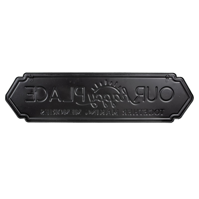 Clayre & Eef Plaque de texte 76x1x24 cm Blanc Noir Métal