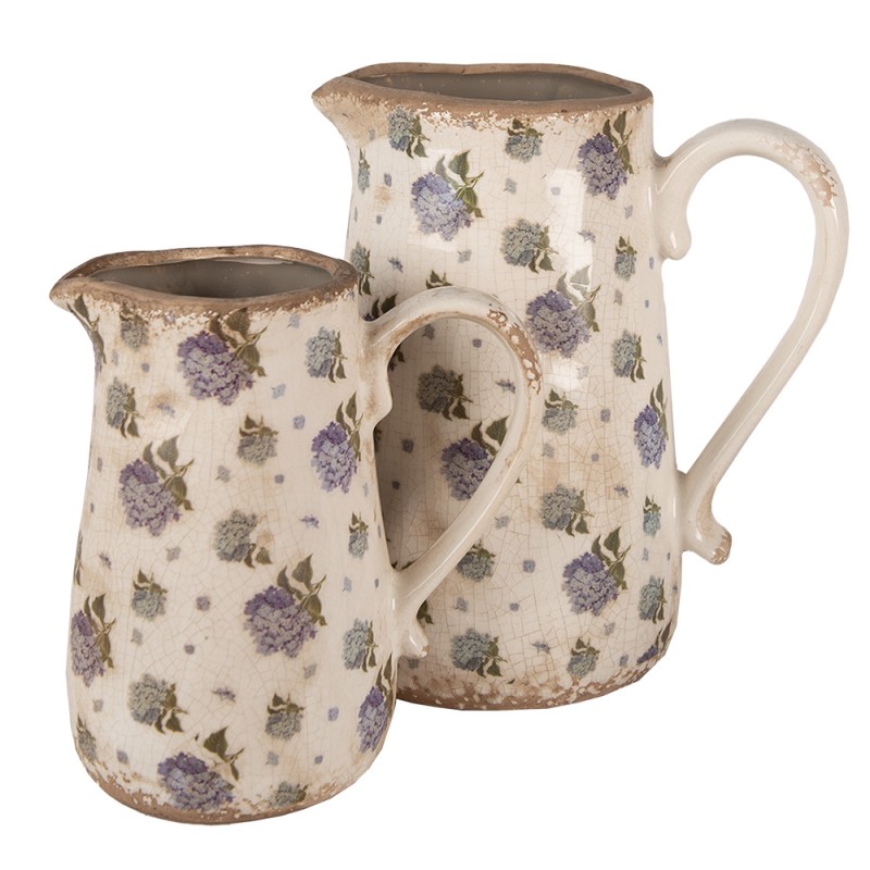 Clayre & Eef Pichet de décoration 16x12x18 cm Beige Bleu Céramique Fleurs