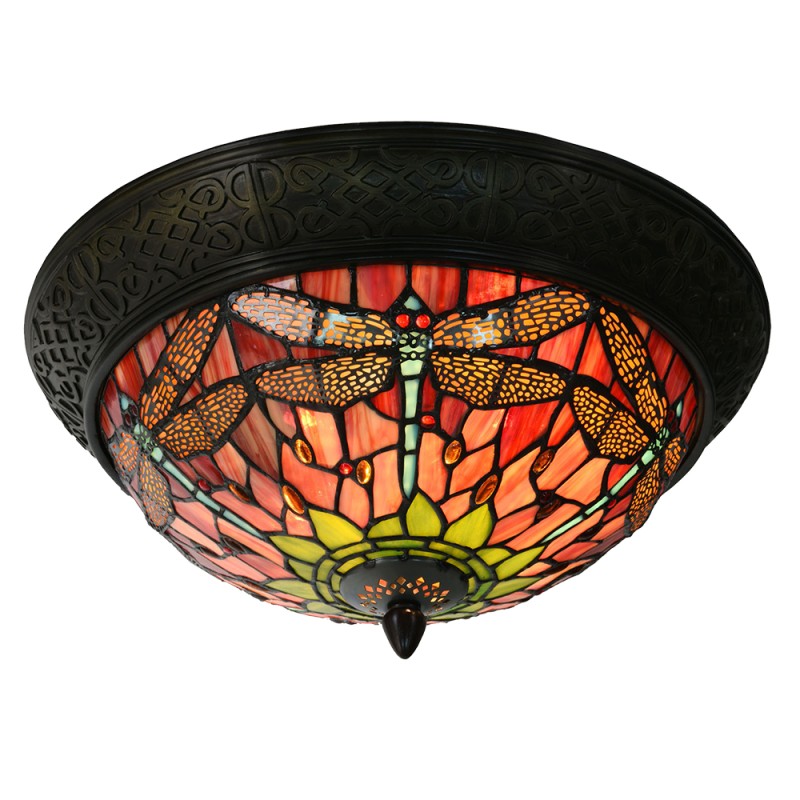 Lumilamp Lampe de plafond Tiffany Ø 38x19 cm Rouge Vert Verre Libellule