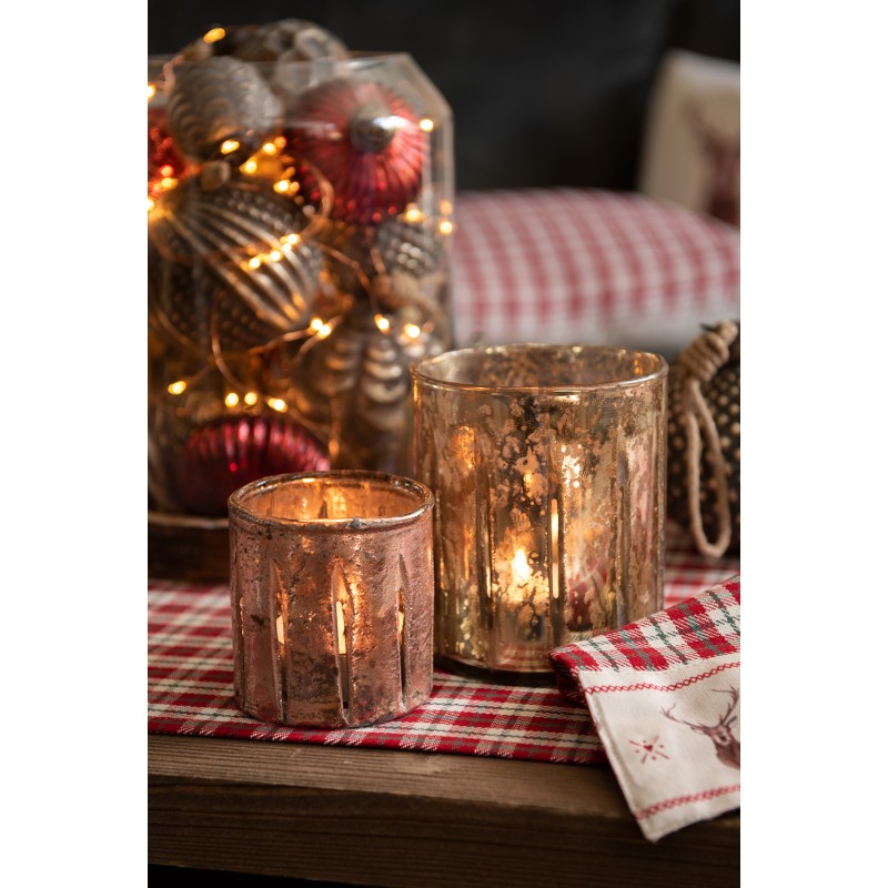 Clayre & Eef Porte-bougie Ø 9x9 cm Rose Couleur or Verre