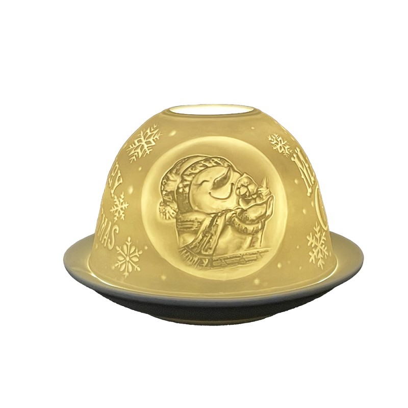 Clayre & Eef Porte-bougie Ø 12x8 cm Blanc Porcelaine Père Noël