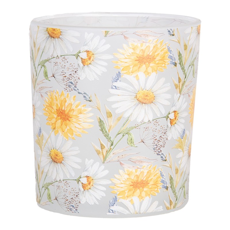 Clayre & Eef Porte-bougie set de 2 Ø 7x8 / 10x13 cm Blanc Jaune Verre Fleurs