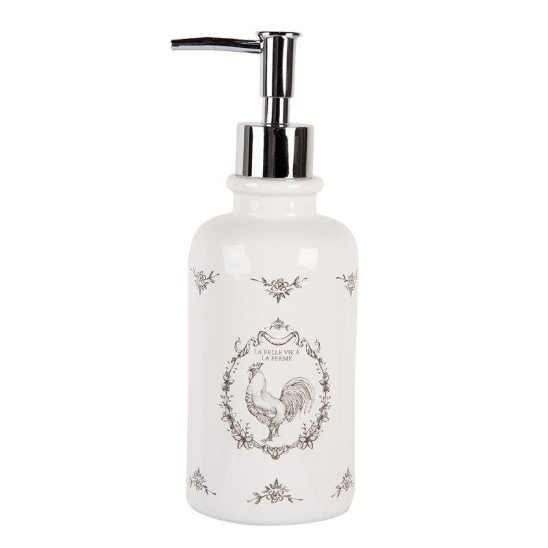 Clayre & Eef Distributeur de savon 350 ml Blanc Céramique Coq