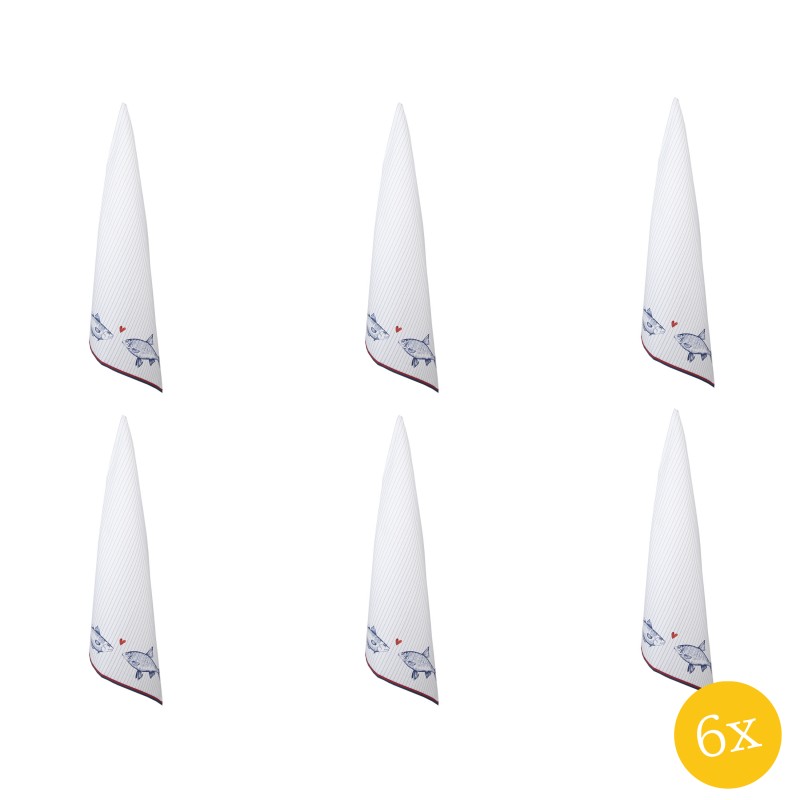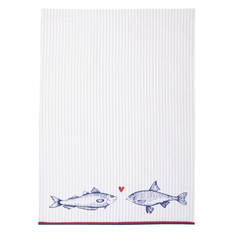 Clayre & Eef Theedoek set van 6 stuks 50x70 cm Wit Blauw Katoen Rechthoek Vissen Keukenhanddoek