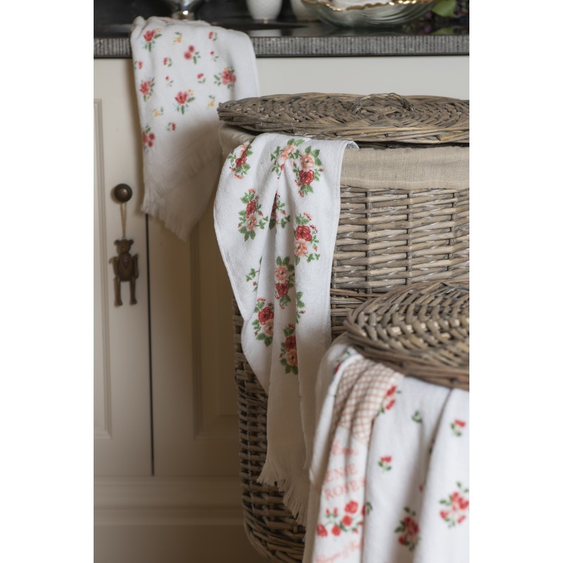 Clayre & Eef Serviette invitée 40x66 cm Blanc Vert Coton Roses