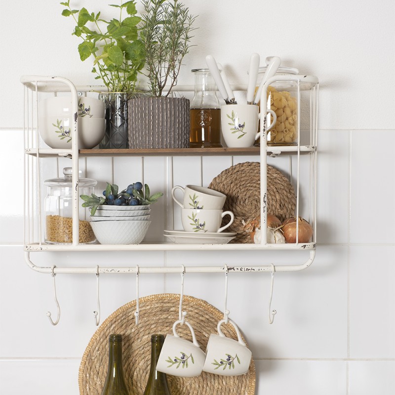 Clayre & Eef Tasse et soucoupe 200 ml Beige Bleu Céramique Branche d'olivier