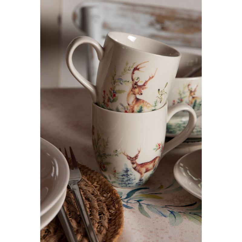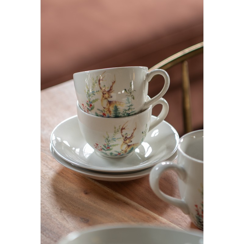 Clayre & Eef Tasse et soucoupe 200 ml Blanc Céramique Cerf