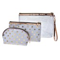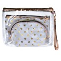 Juleeze Trousse de toilette pour femmes set de 3 23x17 / 20x13 / 18x12 cm Blanc Couleur or Polyester Coeurs