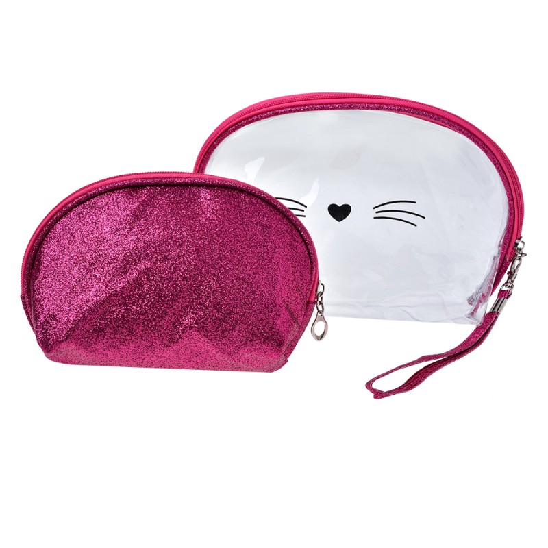 Juleeze Trousse de toilette pour femmes set de 2 24x15 / 19x12 cm Rose Polyuréthane Chat