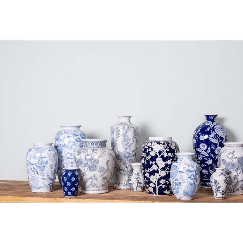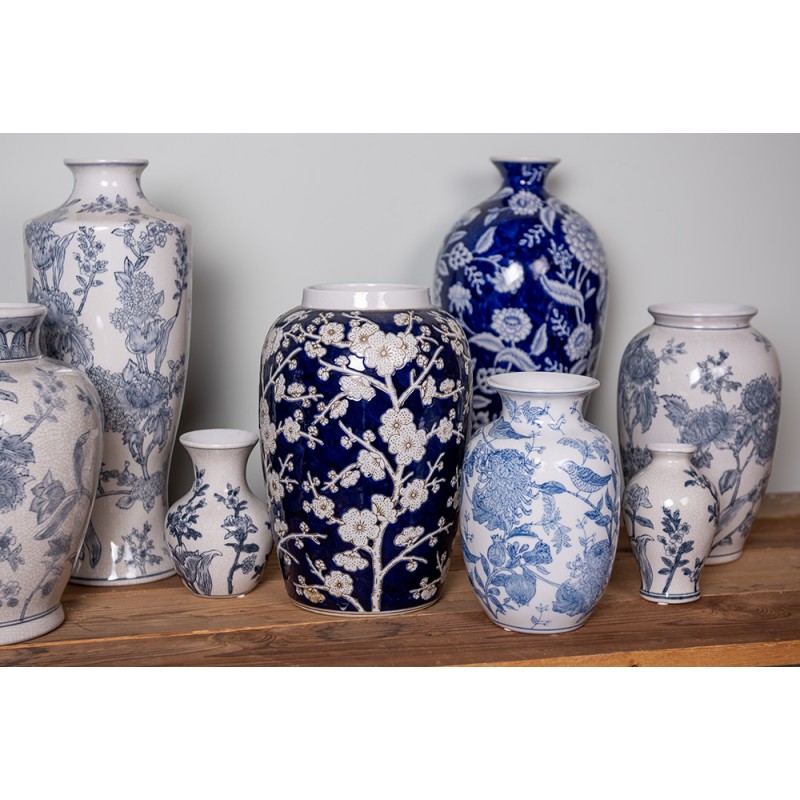 Clayre & Eef Vase Ø 10x16 cm Blanc Bleu Céramique Fleurs