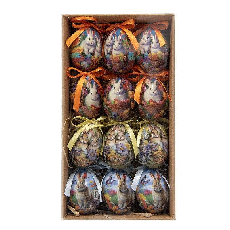 Clayre & Eef Set di 12 decorazioni pasquali Uovo Ø 4x5 cm Multicolore Plastica