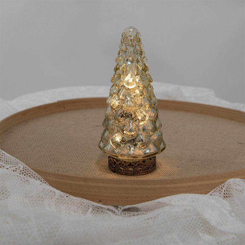 Clayre & Eef Decorazione natalizia con illuminazione a LED Albero di Natale Ø 8x16 cm Color oro Vetro